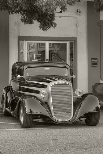 Another shot from the Livermore Nostalgia Car Show. Converted 3 exposures to HDR then applied a Black and White filter in Photoshop, also added a slight amber tint.